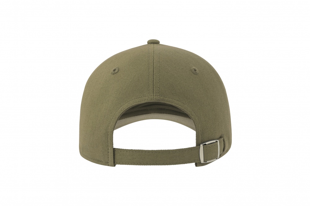 - Geschwungener Schirm und eine Schnalle mit genähtem Loch auf der Rückseite