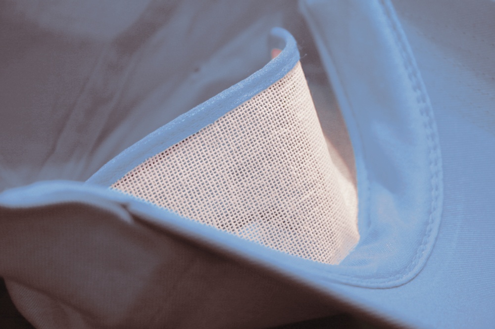 - Farblich abgesetzter Schirm und gesteppte Öffnungen