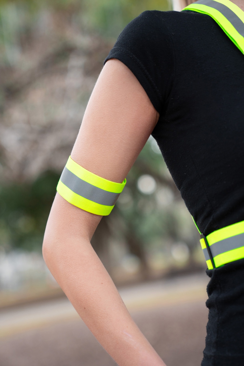 - Aus elastischen, fluoreszierenden und reflektierenden Materialien