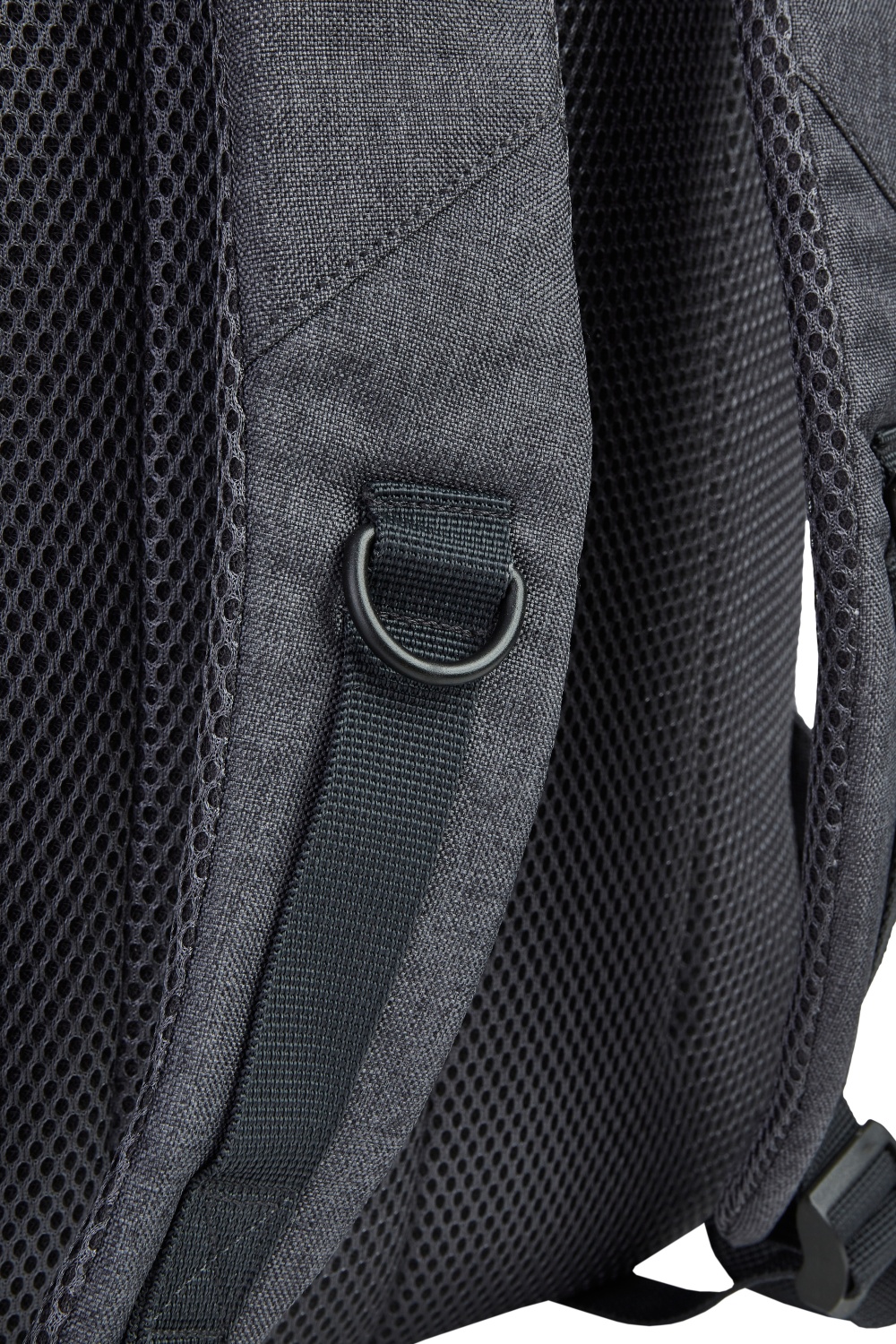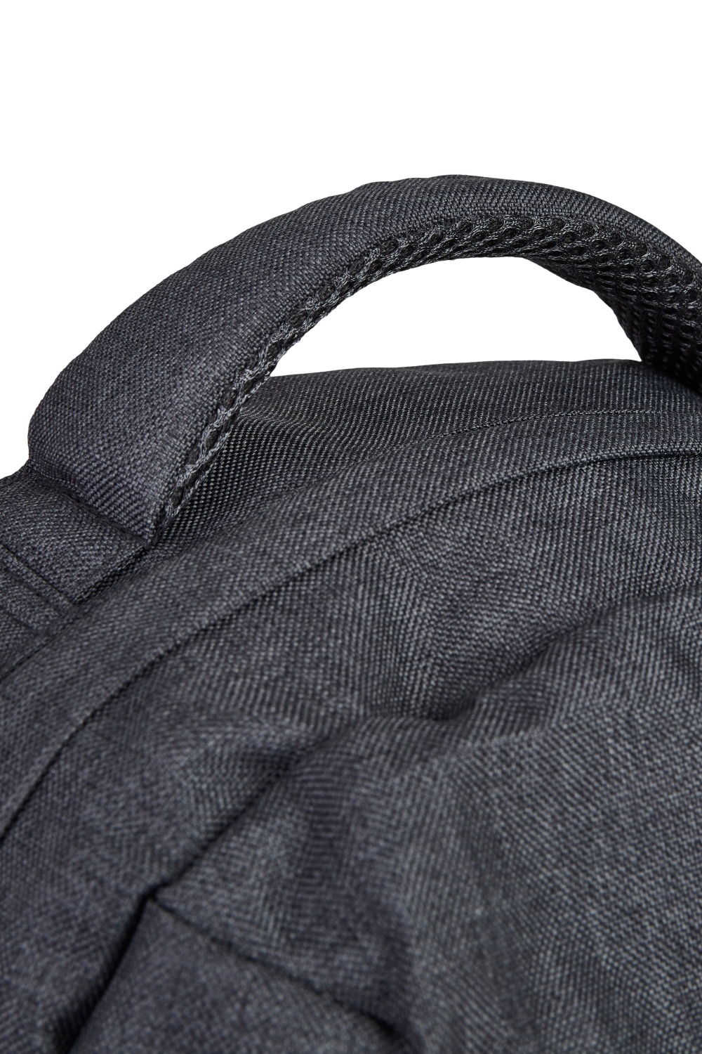 - Obenliegender, gepolsterter Tragegriff aus dunkelgrauem Air-Mesh