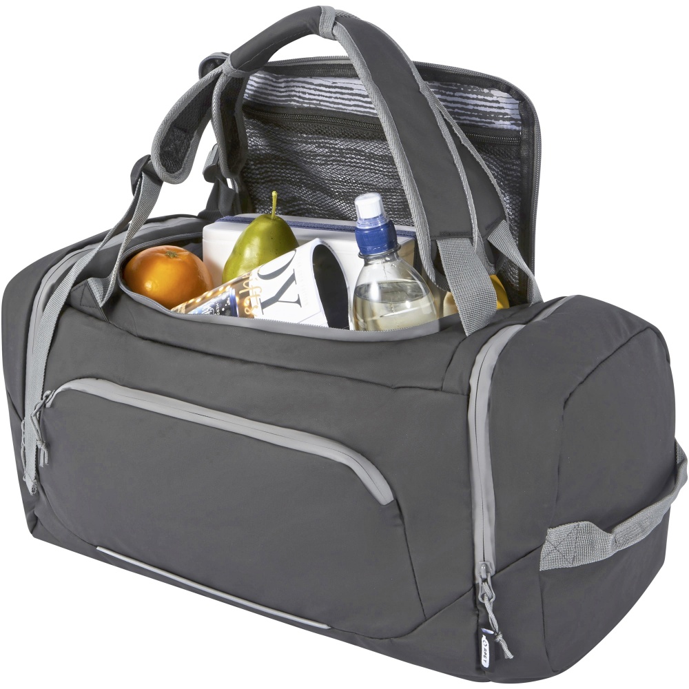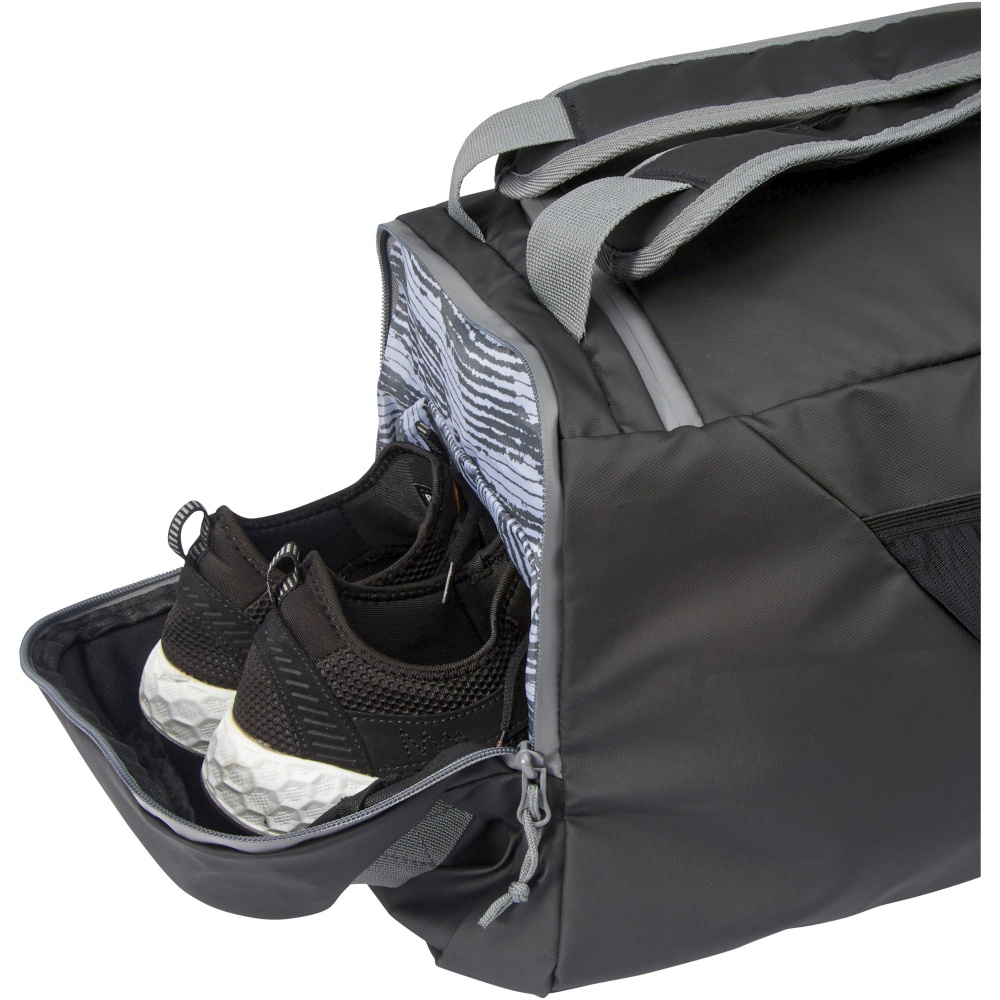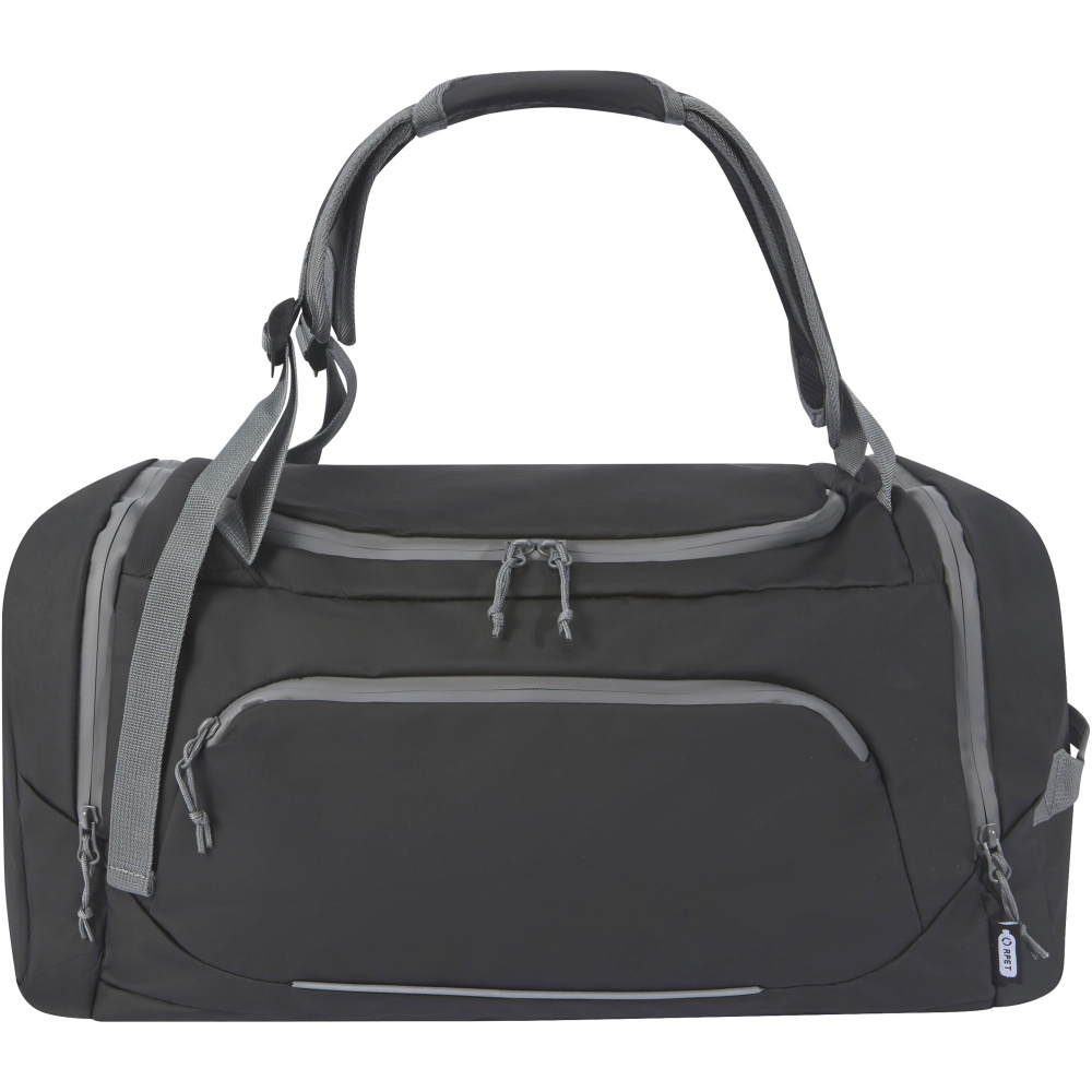- Wasserabweisende 2-in-1 Reisetasche aus zertifizierten, recycelten Materialien, einschließlich der Reißverschlüsse