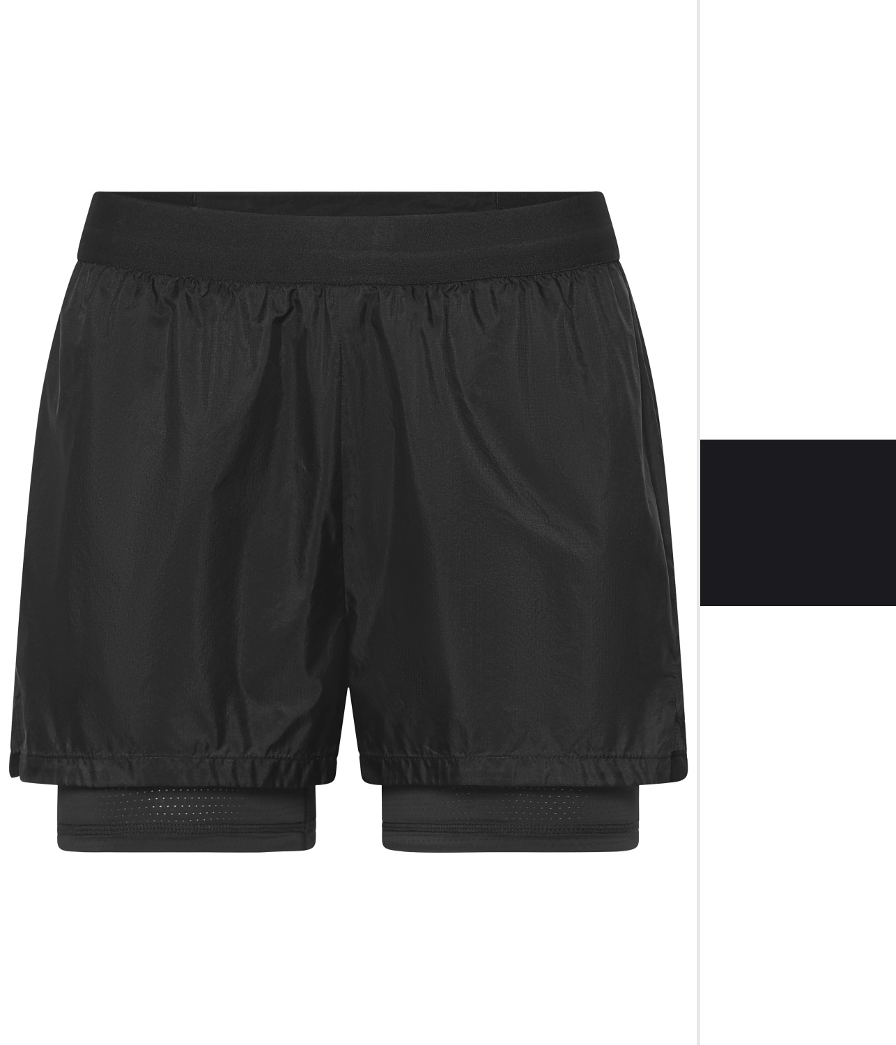 - Dünne, elastische Webstoffqualität außen und eingearbeitete, enganliegende Innenhose aus angenehm weicher, elastischer Jerseyqualität mit luftdurchlässiger Struktur