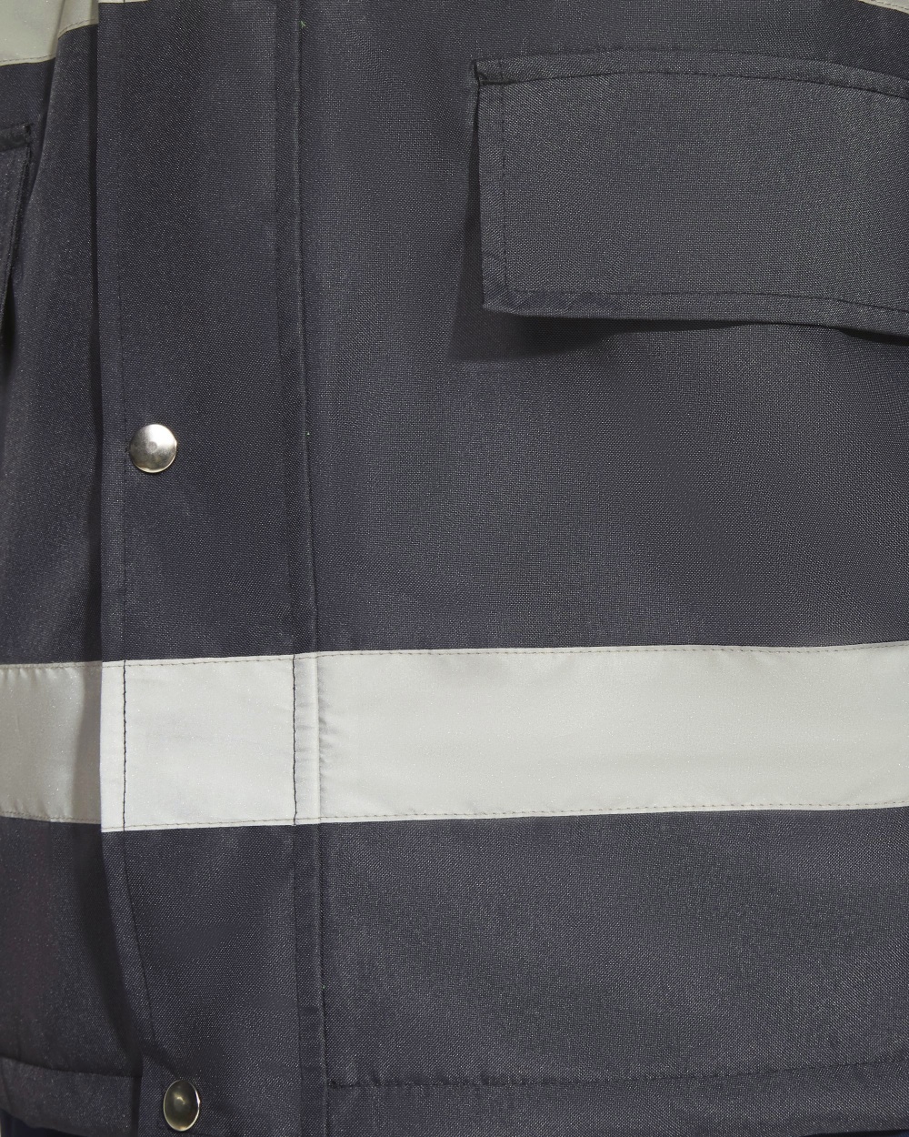 - Zwei horizontale Reflektorstreifen an Rumpf und Ärmeln und vertikale Reflektorstreifen an den Schultern