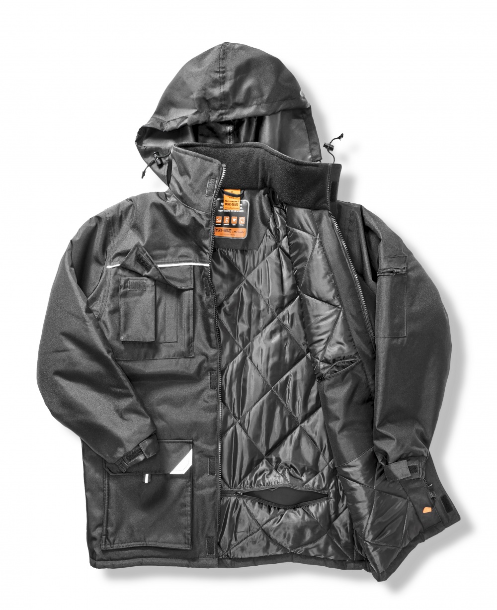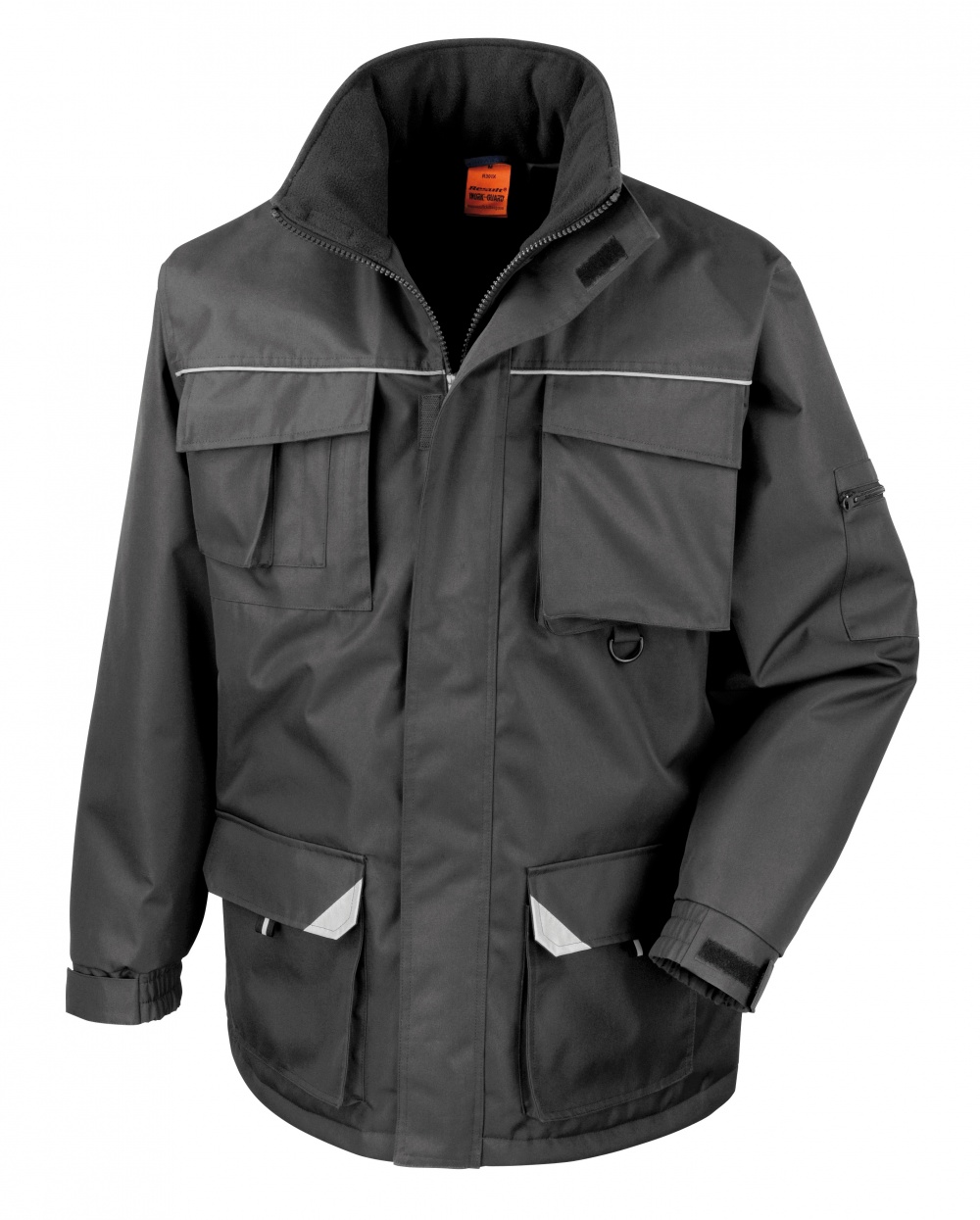 - Reflektierende Details über der Brust und den Taschen