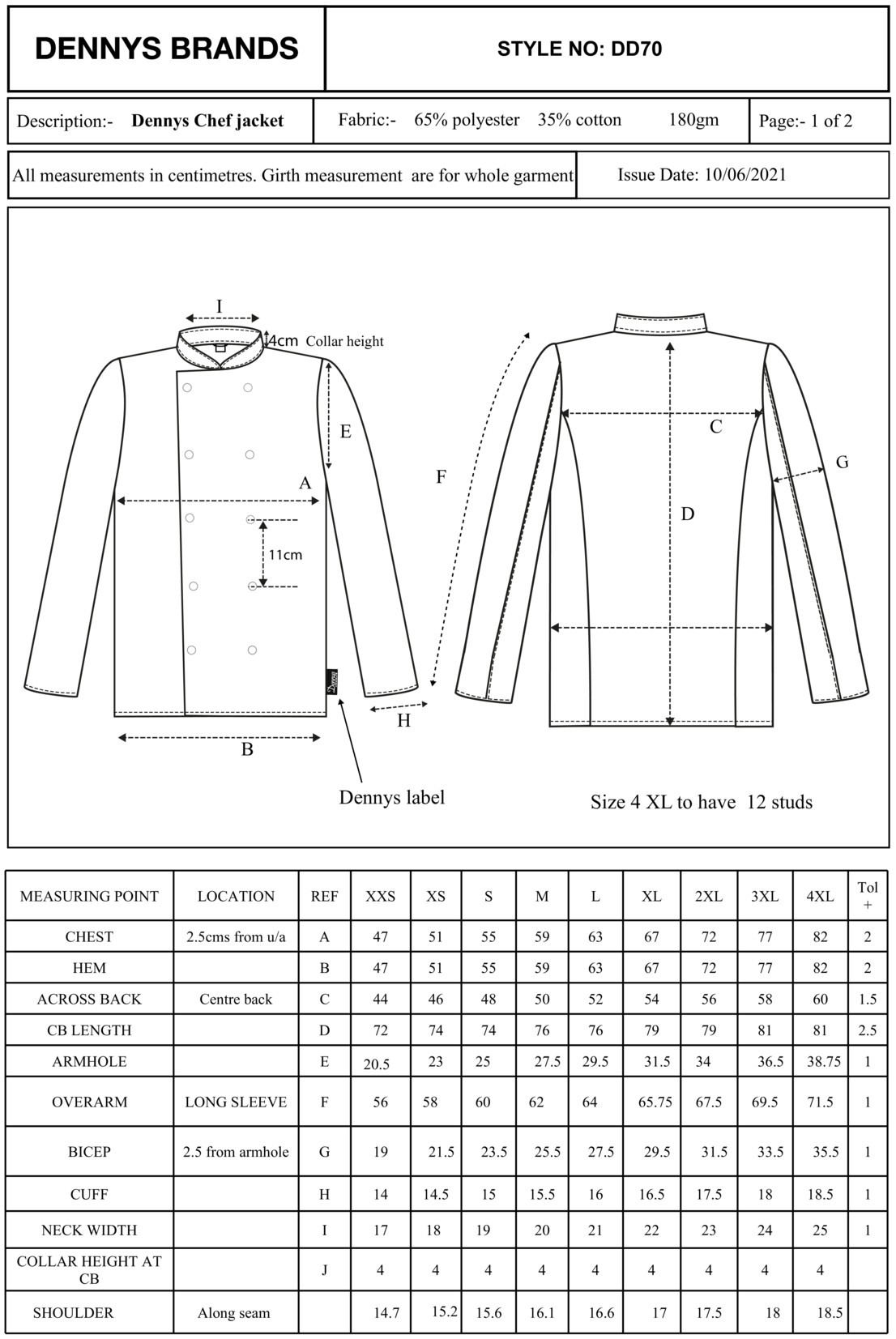 - 10 Druckknöpfe auf einer zweilagigen Vorderseite