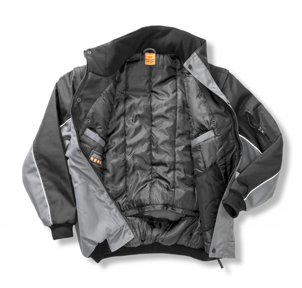 - Windschutzleiste mit Knopfverschluss, dekorativer Paspelbesatz an Vorder- und Rückseite und Ärmeln mit Reflektions-Material von 3M™ Scotchlite™