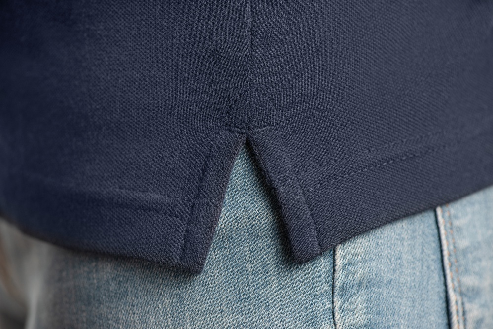 - Nackenband und Seitenschlitze mit Twill-Band verstärkt