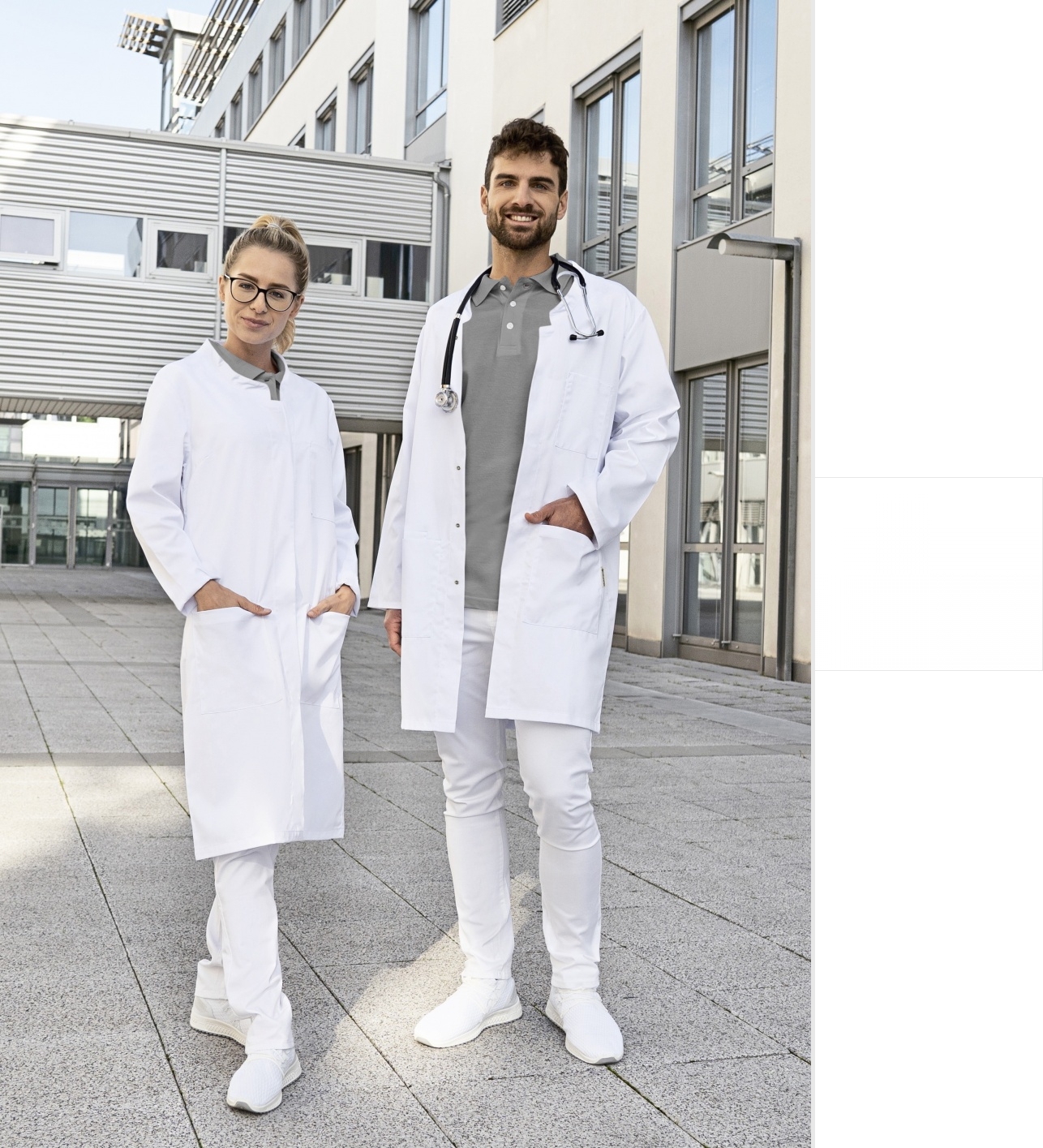 - Langer Arbeitskittel mit modernem Stehkragen