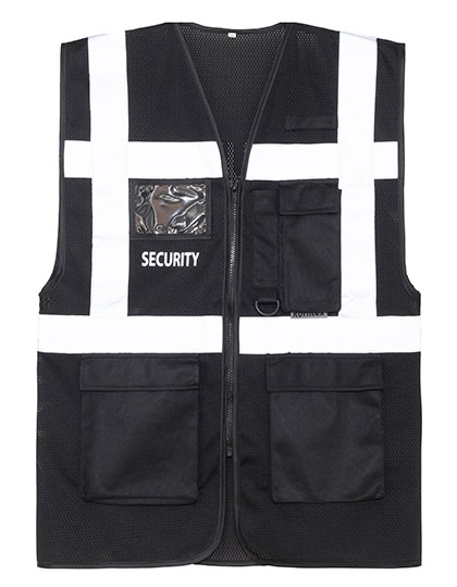 - Multifunktionale Mesh Warnweste für den Security-Bereich mit Reißverschluss und Taschen