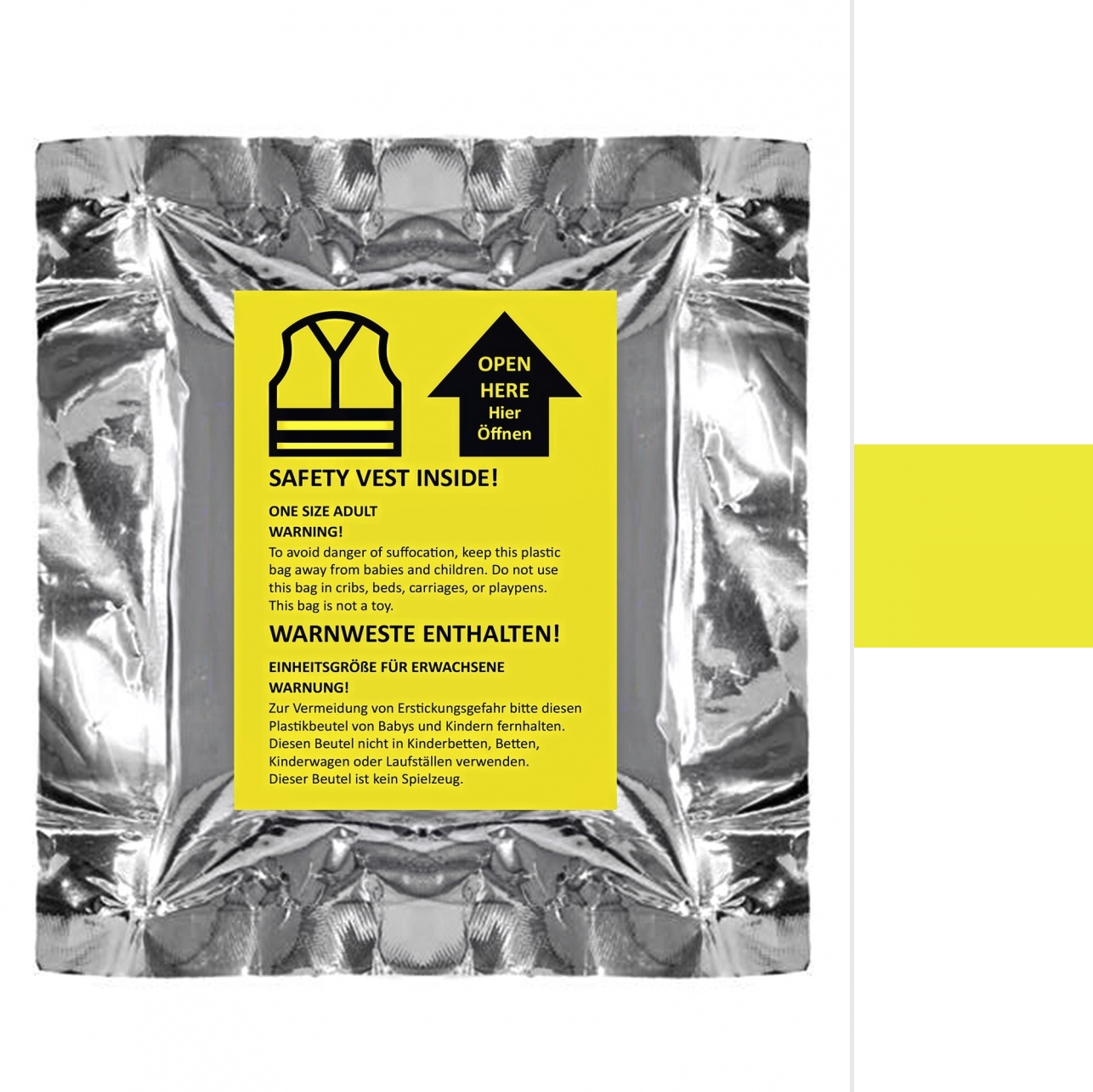 - Warnweste mit zwei Reflexstreifen in praktischer Mini-Vakuum-Verpackung